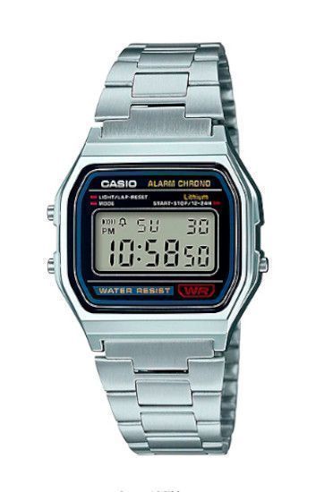 El Casio A158WA‑1D destaca por su diseño digital clásico con pantalla clara y fácil de leer. Su correa de acero inoxidable ajustable aporta un toque elegante y resistente, ideal para el uso diario, casual o urbano. Es un reloj ligero y cómodo para llevar todo el día, ofreciendo un equilibrio perfecto entre estilo retro y funcionalidad moderna.