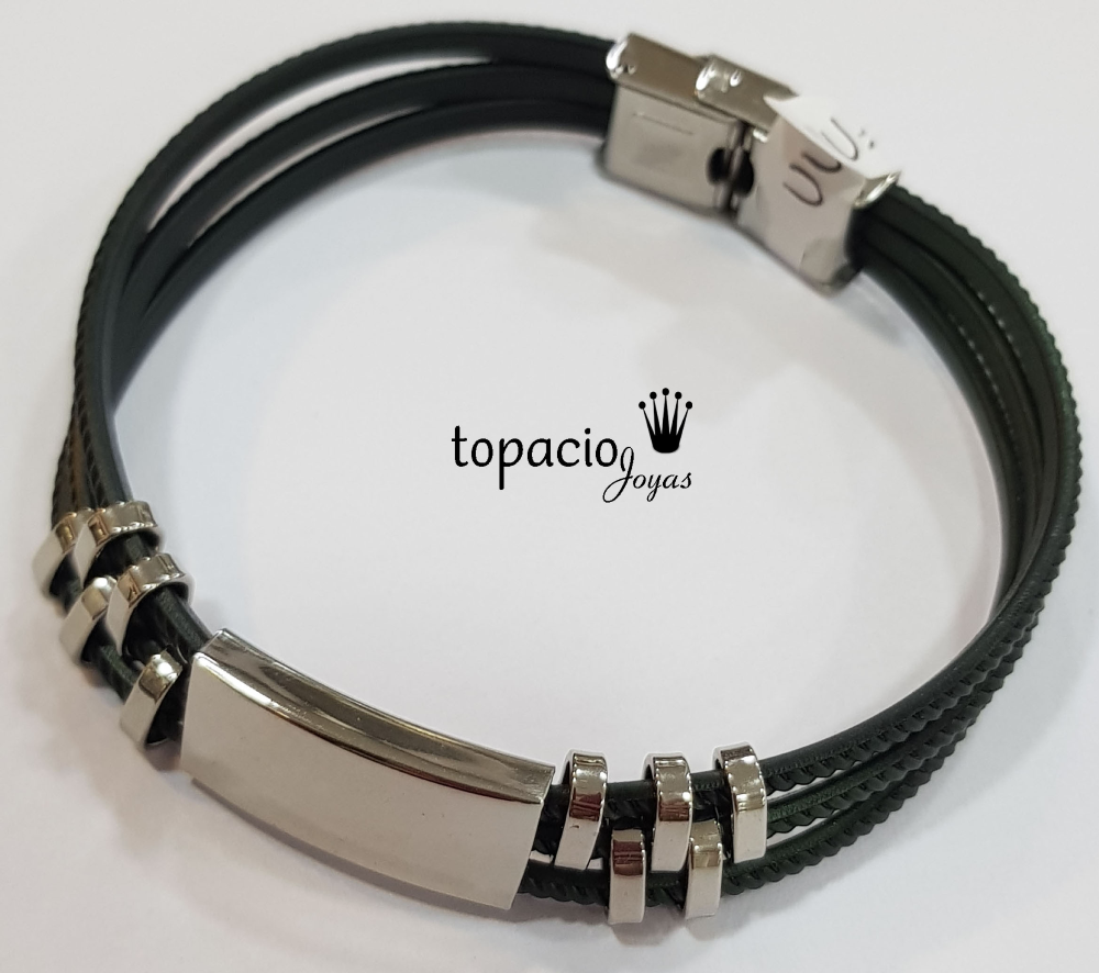 Pulsera con 3 correas de simil cuero con terminaciones en Acero Quirúrgico, mide 21,5cm