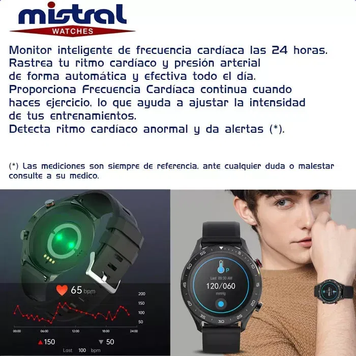 Los valores de control de salud arrojados por el reloj son referenciales. Los mismos no sustituyen los aparatos profesionales de medición ni la consulta y/o control médico presencial. Se recomienda que, en caso de padecer algún tipo de dolencia y/o afección en la salud, recurrir a centro de salud y/o consulta médica.