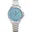 Esfera: Color azul claro con textura elegante, índices estilizados y detalles distintivos de la marca.